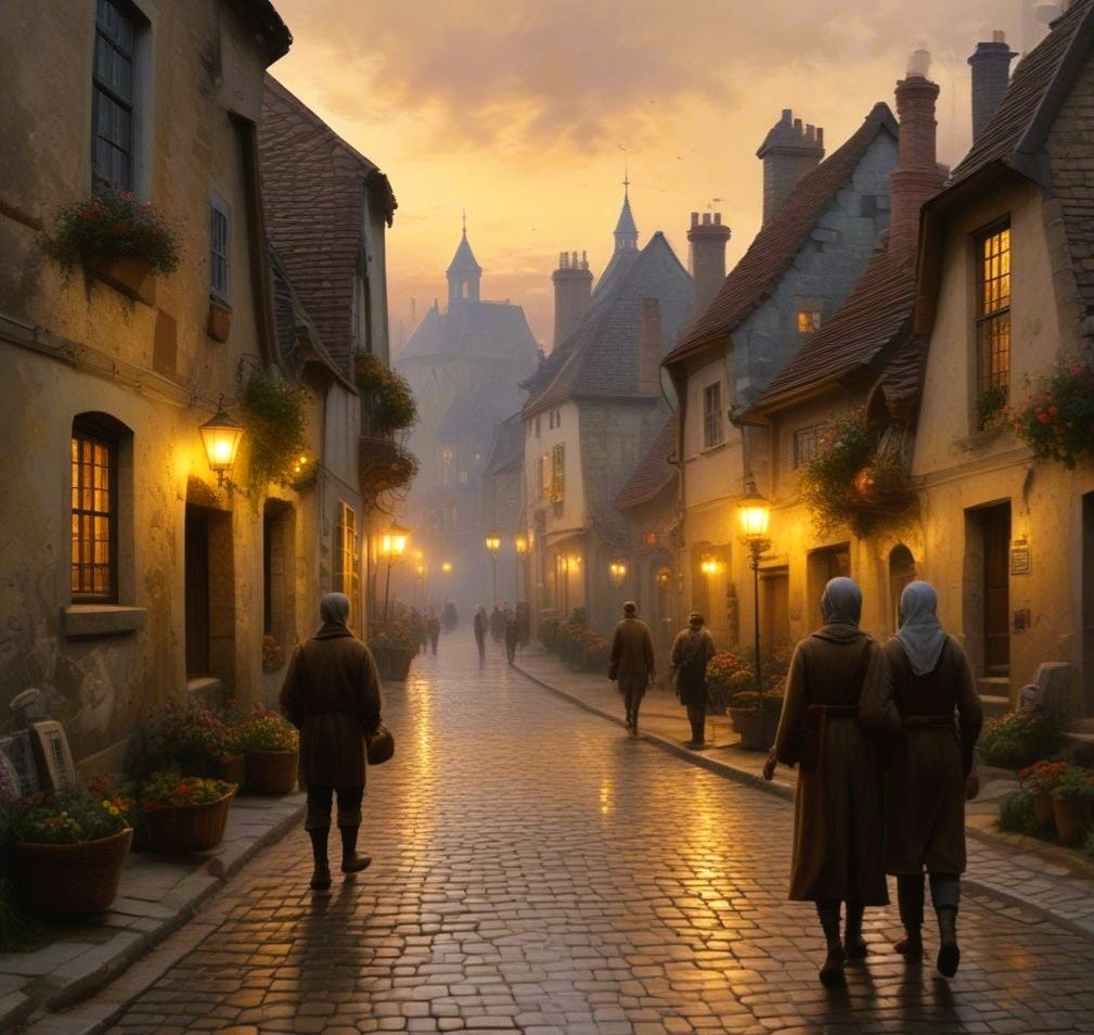They turned their backs at once, but the words stuck to Alina like burrs, even as Bridget quickened her pace, eyes fixed somewhere far beyond the cobbled street. Alina cast a sideways glance at Bridget, who walked a step too quickly, her shoulders taut as bowstrings. For a fleeting moment, Alina wondered if Bridget had heard the villagers too—or if she already knew. The thought lodged in her chest like a stone and a shiver ran down her spine. She forced herself to focus on the comforting scents of warm bread and coffee, to keep walking, even though the air between them felt heavier with every step.